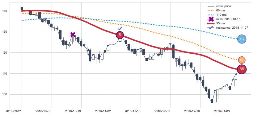 下跌趋势2018-09-21-2019-01-08,均线35确认关键阻力1处