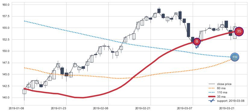 上涨趋势2019-01-08-2019-03-21,均线35确认关键支撑1处