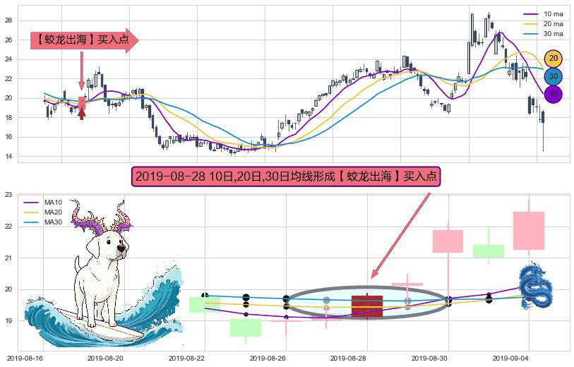 形态多维评估: ⚀ 2019-08-28日显现 10日-20日-30日均线 【蛟龙出海】买入点 看多信号,后市看涨,买入
