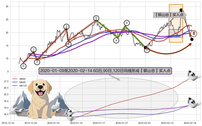 🍖 长线趋势跟踪组合短线均值回复[强支撑信号]2018-10-29-2020-03-12上升趋势依然成立(上涨趋势跟踪依然可行),短线价格略微下行回调(均值回复猜想),即将接近趋势提供的未破位的支撑价格:17.35。
