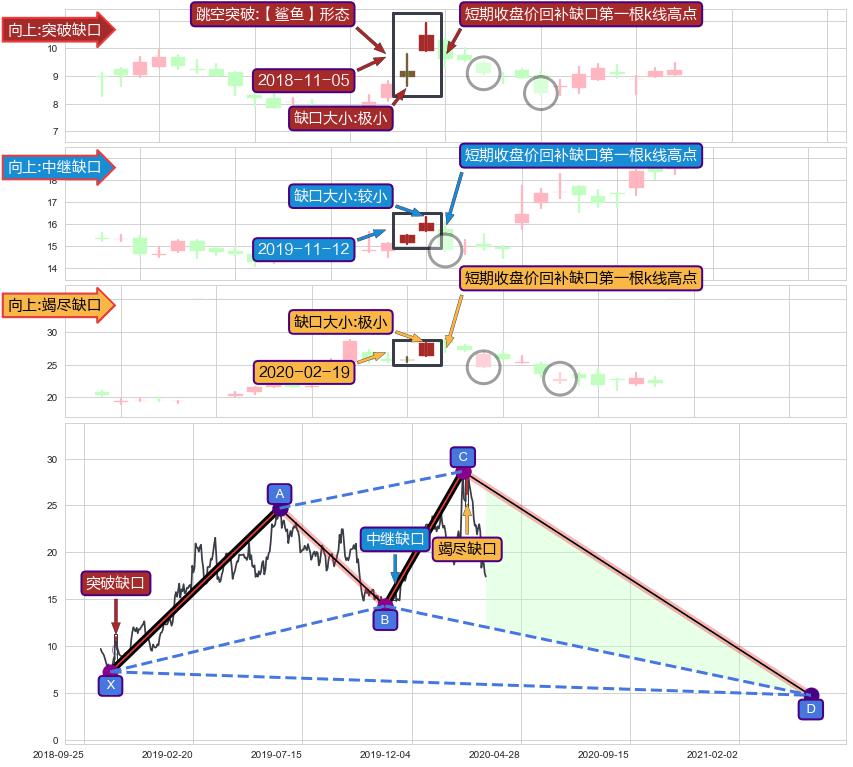 ➢ 【鲨鱼】形态 🔜 竭尽缺口 🔜 中继缺口 🔜 突破缺口 综合量化分数:45.78 【偏空】