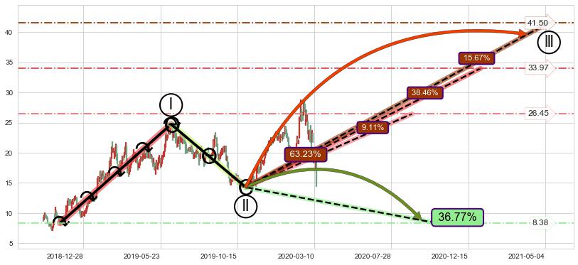 ➣ AI预测: 假定反转启动后, 第❶目标位置(2021-08-12, 13.87)