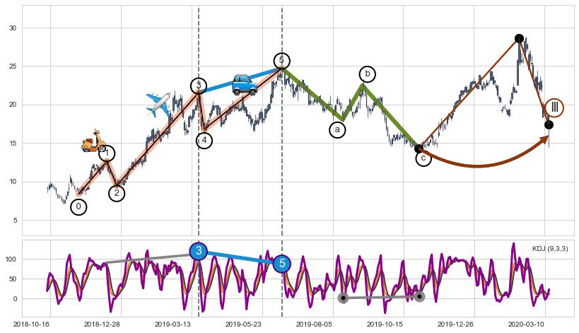 ➣ a,c调整浪MACD, RSI, KDJ走势都【未出现】背离,abc走势延续, 5浪反转概率增强