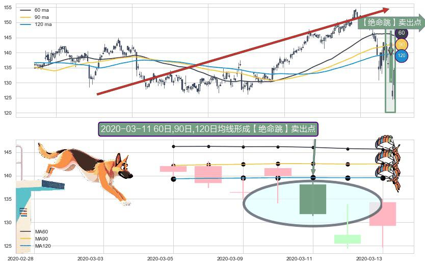 形态多维评估: ⚀ 2020-03-11日显现 60日-90日-120日均线 【绝命跳】卖出点 看空信号,后市看跌,卖出