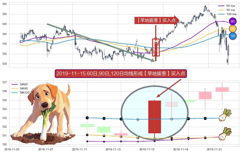 形态多维评估: ⚀ 2019-11-15日显现 60日-90日-120日均线 【旱地拔葱】买入点 看多信号,后市看涨,买入