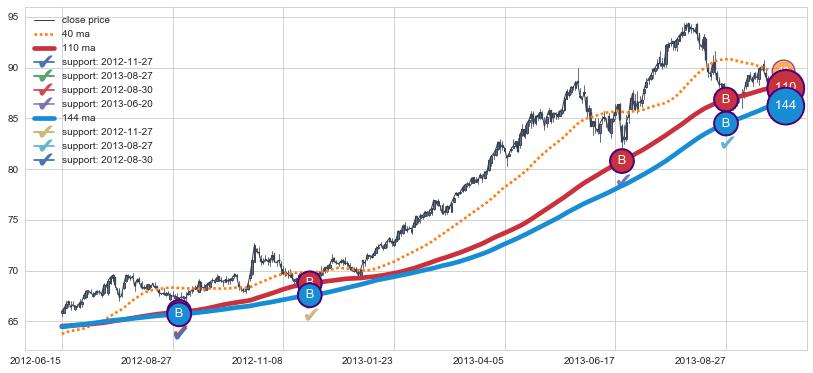 上涨趋势2012-06-15-2013-09-25,均线144, 110确认关键支撑4处