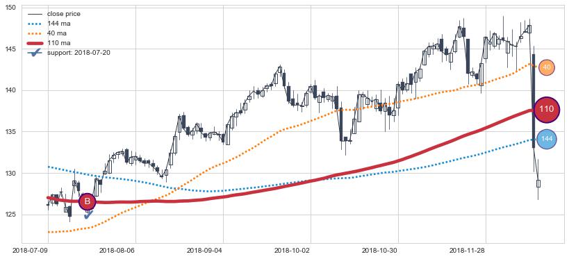 上涨趋势2018-07-09-2018-12-17,均线110确认关键支撑1处
