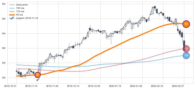上涨趋势2019-10-31-2020-02-27,均线40确认关键支撑1处