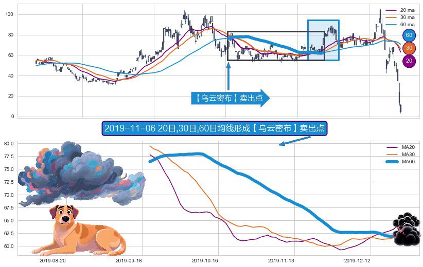 形态多维评估: ⚀ 2019-09-20日-2019-12-24日显现 20日-30日-60日均线 【乌云密布】卖出点 看空信号,后市看跌,卖出