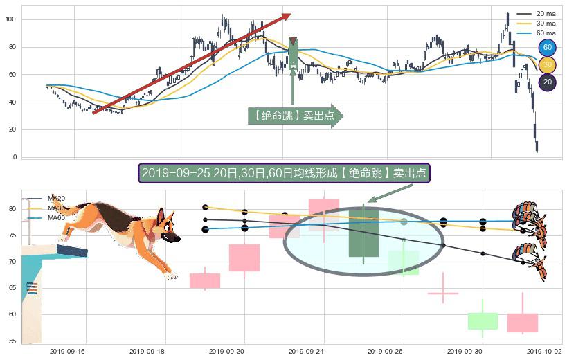 形态多维评估: ⚀ 2019-09-25日显现 20日-30日-60日均线 【绝命跳】卖出点 看空信号,后市看跌,卖出