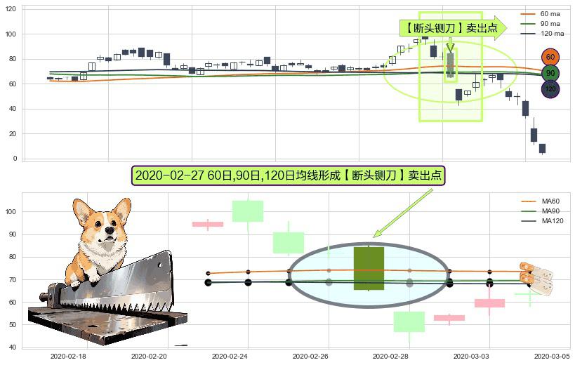 形态多维评估: ⚀ 2020-02-27日显现 60日-90日-120日均线 【断头铡刀】卖出点 看空信号,后市看跌,卖出
