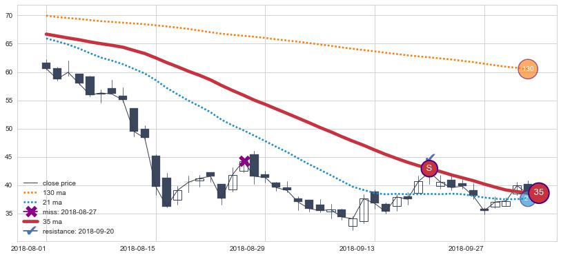 下跌趋势2018-08-01-2018-10-03,均线35确认关键阻力1处