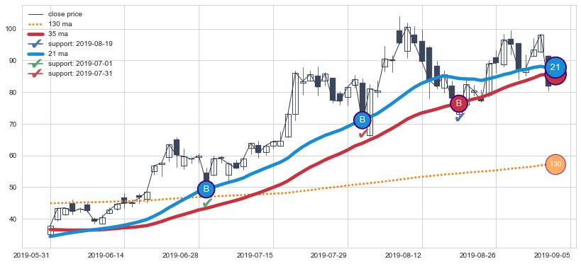 上涨趋势2019-05-31-2019-09-05,均线35, 21确认关键支撑3处