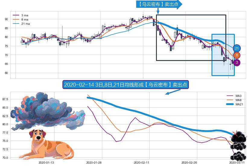 形态多维评估: ⚀ 2020-01-23日-2020-03-09日显现 3日-8日-21日均线 【乌云密布】卖出点 看空信号,后市看跌,卖出