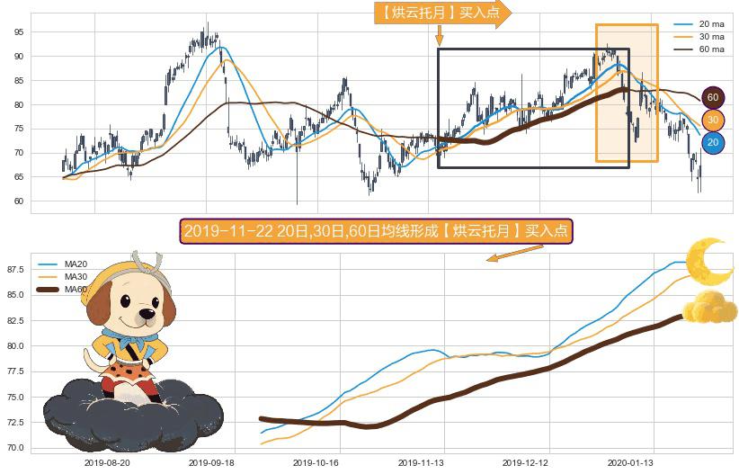 形态多维评估: ⚀ 2019-09-25日-2020-01-27日显现 20日-30日-60日均线 【烘云托月】买入点 看多信号,后市看涨,买入