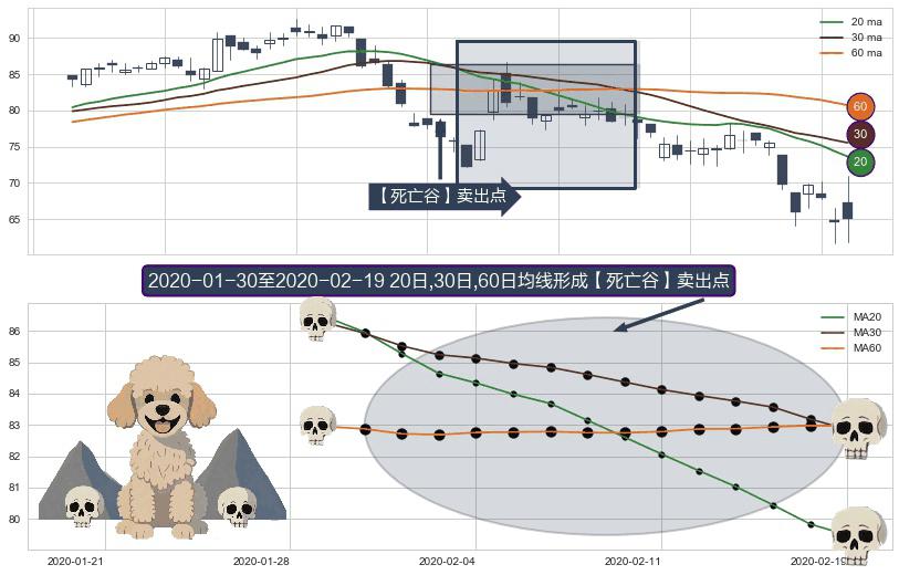 形态多维评估: ⚀ 2020-01-31-日至2020-02-19-日显现 20日-30日-60日均线 【死亡谷】卖出点 看空信号,后市看跌,卖出