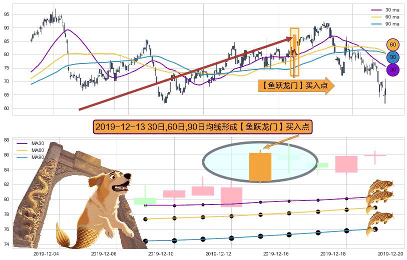 形态多维评估: ⚀ 2019-12-13日显现 30日-60日-90日均线 【鱼跃龙门】买入点 看多信号,后市看涨,买入