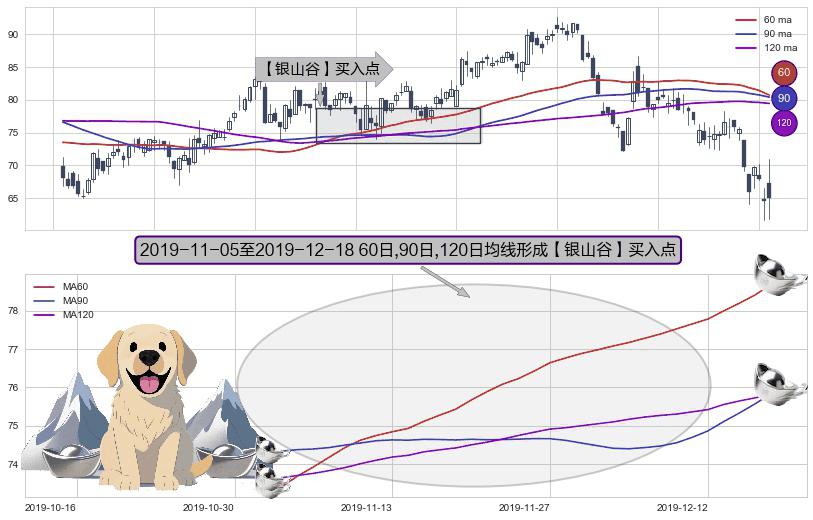 形态多维评估: ⚀ 2019-11-06-日至2019-12-18-日显现 60日-90日-120日均线 【银山谷】买入点 看多信号,后市看涨,买入