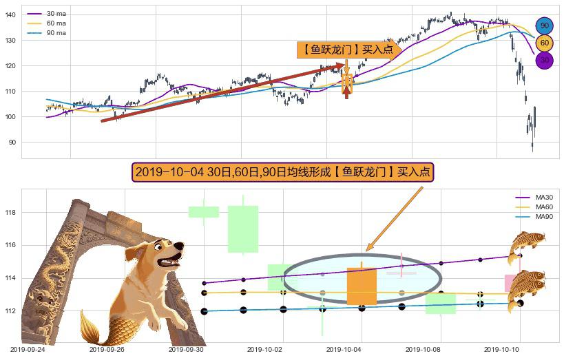 形态多维评估: ⚀ 2019-10-04日显现 30日-60日-90日均线 【鱼跃龙门】买入点 看多信号,后市看涨,买入