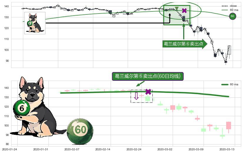 形态多维评估: ⚀ 2020-02-21-日显现 葛兰威尔均线 60日均线 第⑥卖出点 走势反转见顶信号,后市看跌,卖出信号