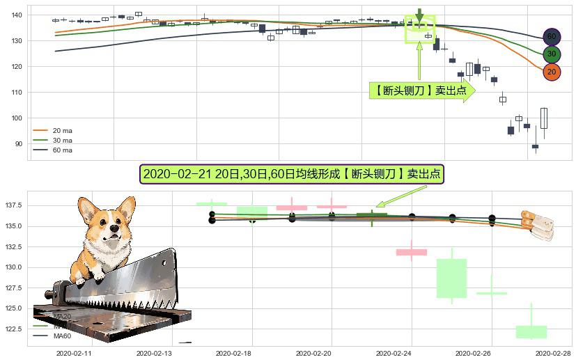 形态多维评估: ⚀ 2020-02-21日显现 20日-30日-60日均线 【断头铡刀】卖出点 看空信号,后市看跌,卖出