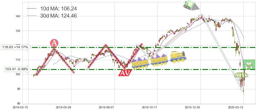 ♘ 阻力价格位118.63,可信任强度65.56%,距离最后交易2020-03-13形成的收盘价格103.91相差 +14.17%