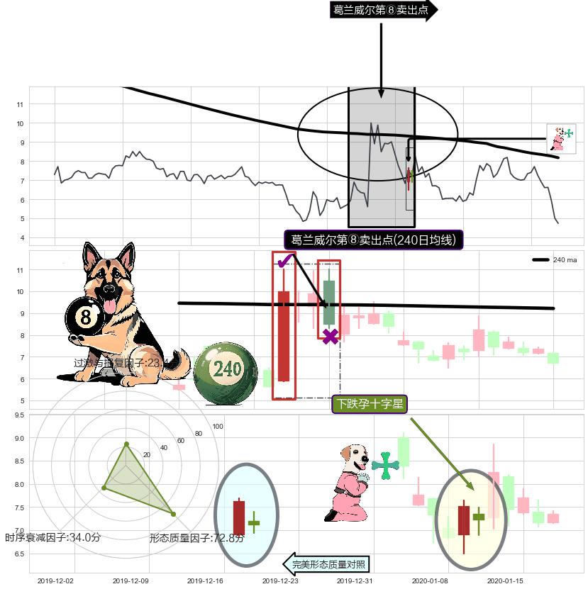 | 2 🅚:射击之星形态 ➕ 🎢:葛兰威尔第⑧卖出点卖出点信号形成后,猜想后续持续下行(趋势跟踪) ☞ 看空信号 ⇥ 【均线】交织【🅚线】⇥ 综合量化分数: 39 | > |