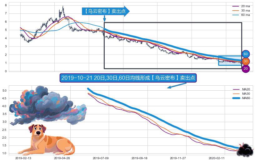 ⚀ 2019-05-30日-2020-03-13日显现 20日-30日-60日均线 【乌云密布】卖出点 看空信号,后市看跌,卖出