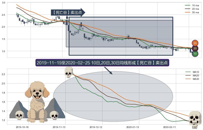 ⚀ 2019-11-20-日至2020-02-25-日显现 10日-20日-30日均线 【死亡谷】卖出点 看空信号,后市看跌,卖出
