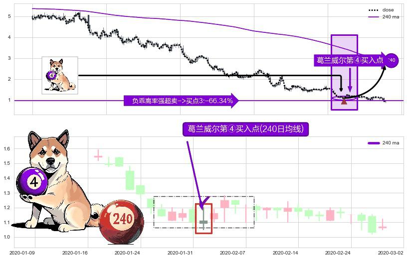 ⚀ 2020-02-03-日显现 葛兰威尔均线 240日均线 第④买入点 下降趋势均值回复的短线反弹信号,后市看涨,买进信号