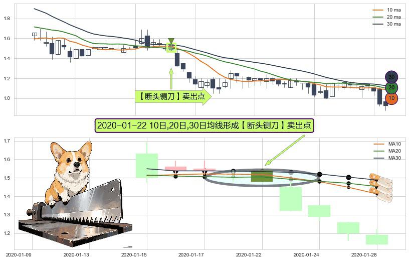 ⚀ 2020-01-22日显现 10日-20日-30日均线 【断头铡刀】卖出点 看空信号,后市看跌,卖出