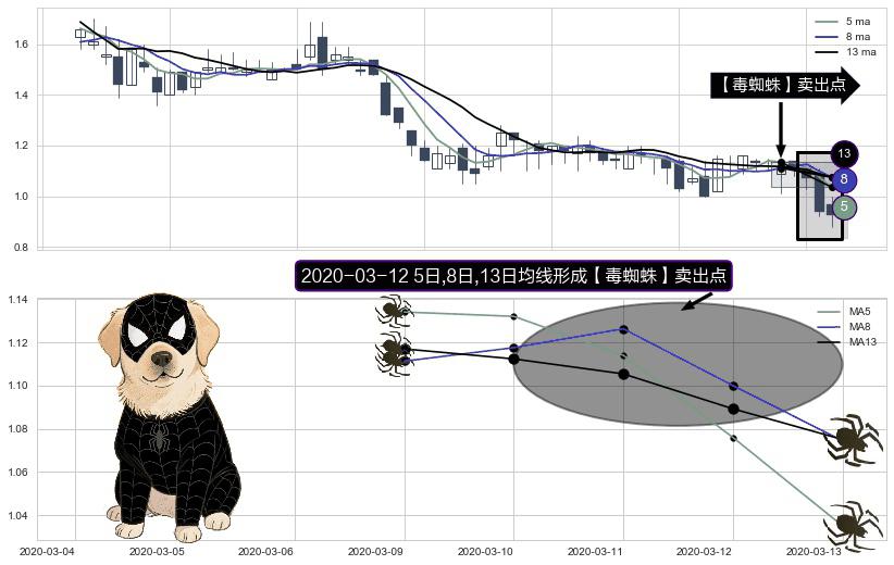 ⚀ 2020-03-12日显现 5日-8日-13日均线 【毒蜘蛛】卖出点 看空信号,后市看跌,卖出