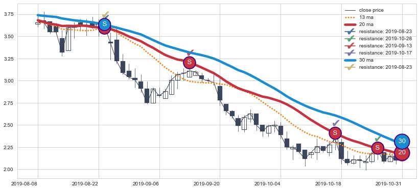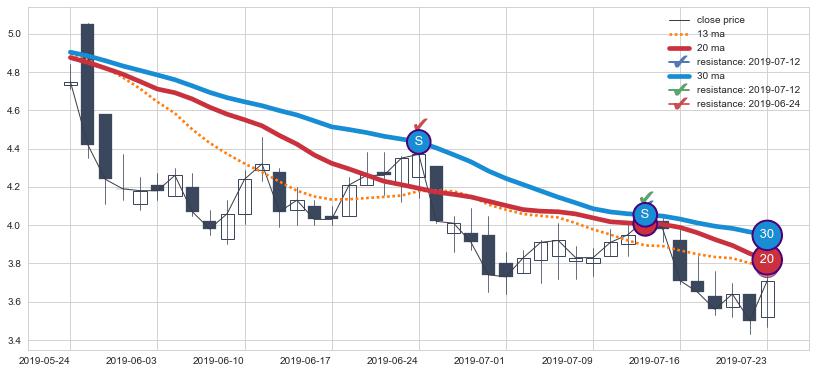 ⚁ MA20和MA30走势平行,且始终保持在短距离内,MA60始终在短中期均线上方,与短中期均线保持一定的距离,微微下行