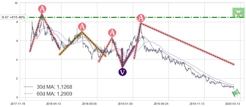 ♘ 阻力价格位8.47,可信任强度61.79%,距离最后交易2020-03-13形成的收盘价格0.9254相差 +815.46%