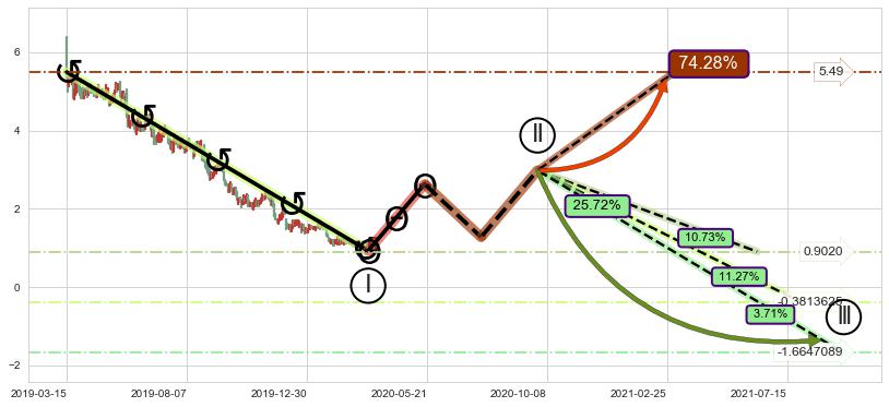 ➣ 循环浪继续向下【平均值】位置(2021-07-30, -0.3813625),匹配聚类样本比例43.84%, 可能性概率11.27%