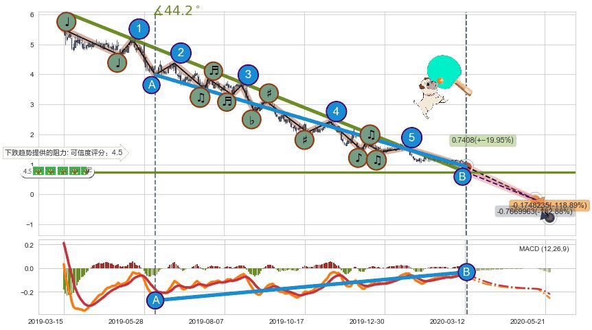➢ 预测:2020-05-13,【试探阻力】稳定目前下跌趋势的前提下,预测价格:-0.1748235