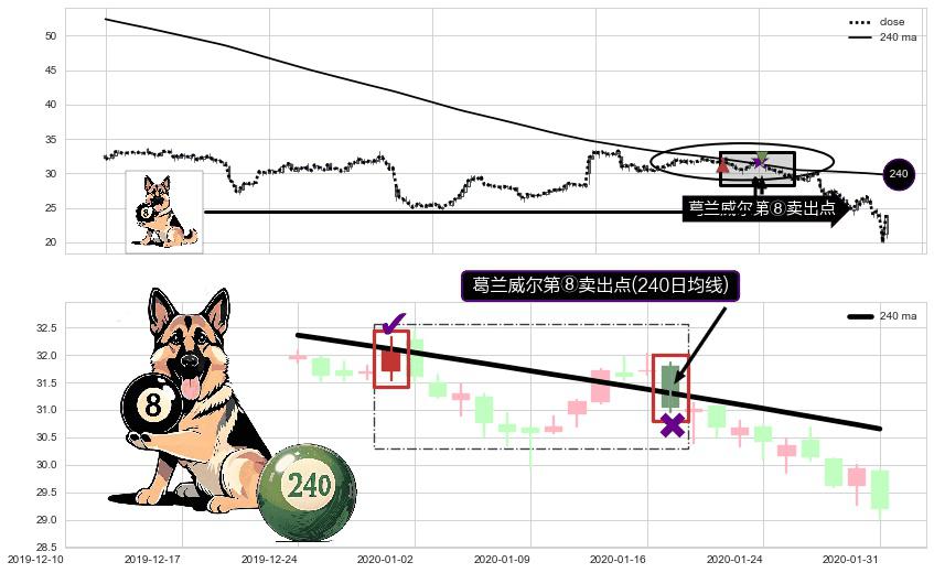 形态多维评估: ⚀ 2020-01-17-日显现 葛兰威尔均线 240日均线 第⑧卖出点 下降趋势的中继信号,后市看跌,卖出信号