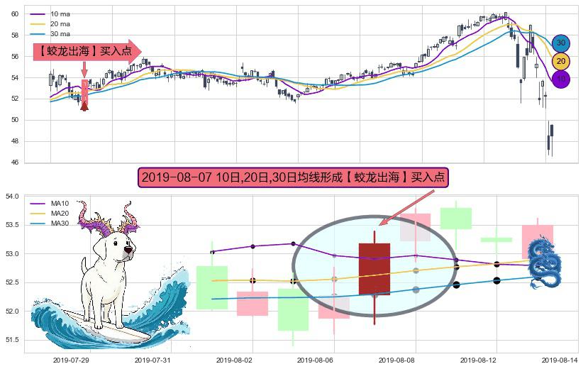 ⚀ 2019-08-07日显现 10日-20日-30日均线 【蛟龙出海】买入点 看多信号,后市看涨,买入