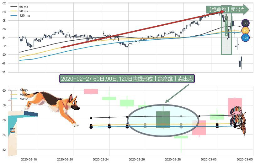 ⚀ 2020-02-27日显现 60日-90日-120日均线 【绝命跳】卖出点 看空信号,后市看跌,卖出