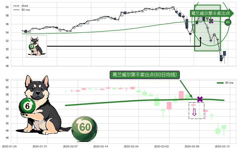 ⚀ 2020-03-06-日显现 葛兰威尔均线 60日均线 第⑥卖出点 走势反转见顶信号,后市看跌,卖出信号
