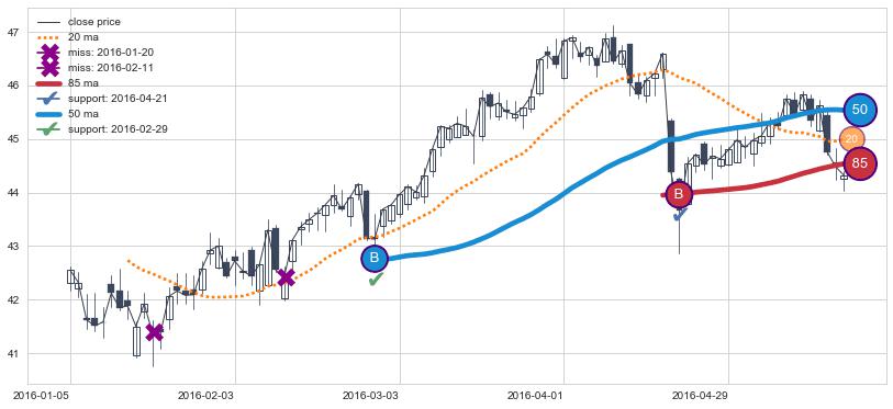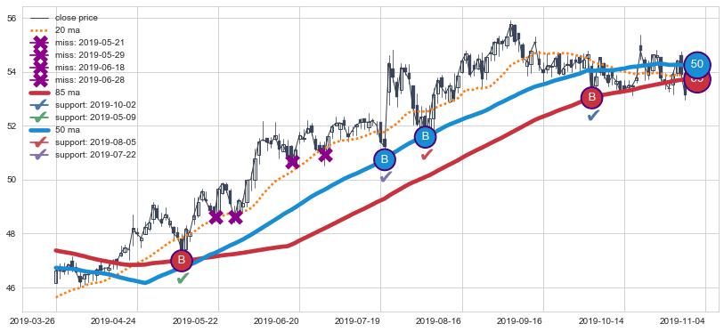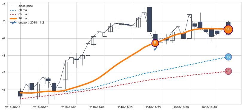 ⚃ 在破位点附近ma走势明显平稳迹象,稍后的走势中ma下垂迹象也出现,信号【可信度中等偏上】