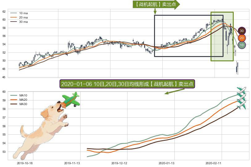 ⚀ 2019-11-18日-2020-02-21日显现 10日-20日-30日均线 【战机起航】卖出点 看空信号,后市看跌,卖出
