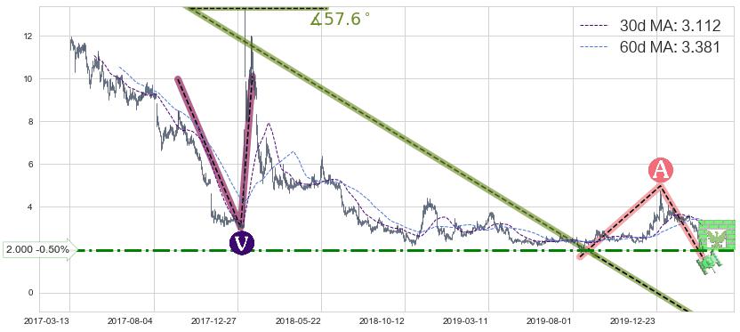 ♘ 阻力价格位2.000,可信任强度64.40%,距离最后交易2020-03-13形成的收盘价格2.010相差 -0.50%