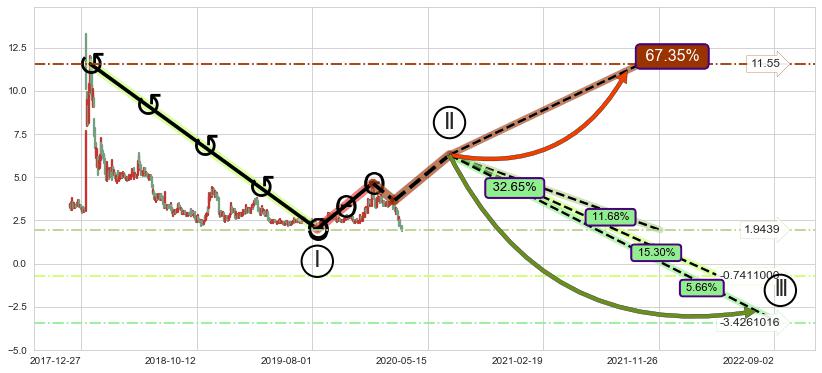 ➣ 高概率大级别循环下跌浪被破坏,反转向上(突破5浪起点)概率67.35%