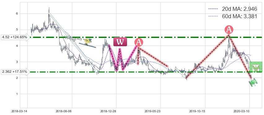 ♘ 阻力价格位2.362,可信任强度67.52%,距离最后交易2020-03-13形成的收盘价格2.010相差 +17.51%