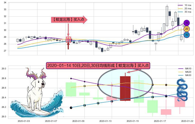 形态多维评估: ⚀ 2020-01-14日显现 10日-20日-30日均线 【蛟龙出海】买入点 看多信号,后市看涨,买入