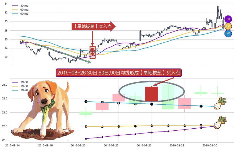 形态多维评估: ⚀ 2019-08-26日显现 30日-60日-90日均线 【旱地拔葱】买入点 看多信号,后市看涨,买入