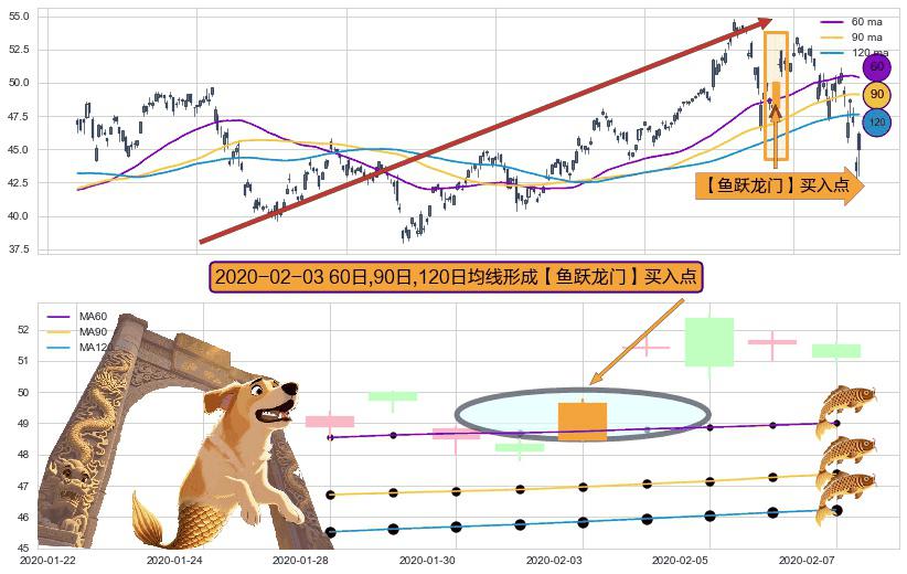 形态多维评估: ⚀ 2020-02-03日显现 60日-90日-120日均线 【鱼跃龙门】买入点 看多信号,后市看涨,买入