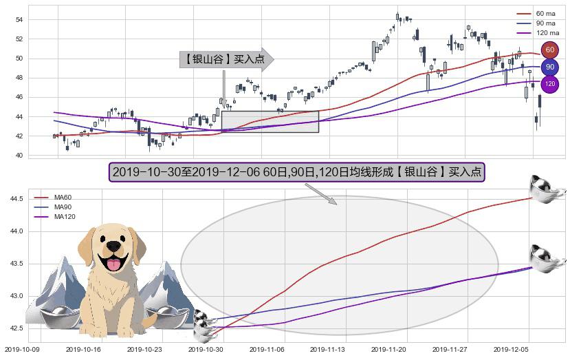 形态多维评估: ⚀ 2019-10-31-日至2019-12-06-日显现 60日-90日-120日均线 【银山谷】买入点 看多信号,后市看涨,买入