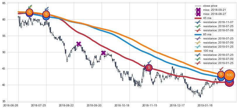 下跌趋势2018-06-26-2019-01-30,均线100, 85, 45确认关键阻力4处